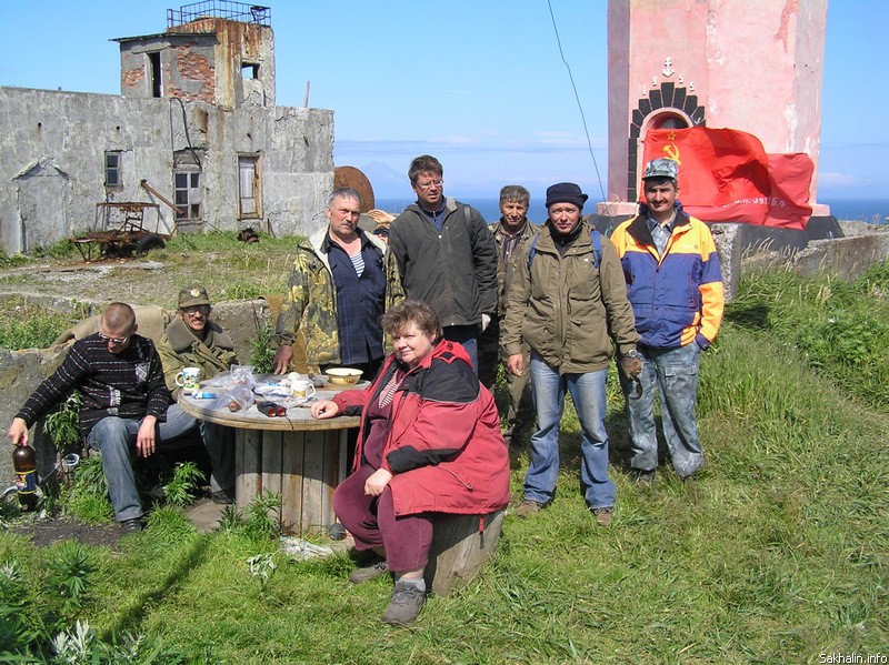 Курильской гряды - мыса Курбатова, на котором у маяка была установлена точная копия Знамени Победы. В пути